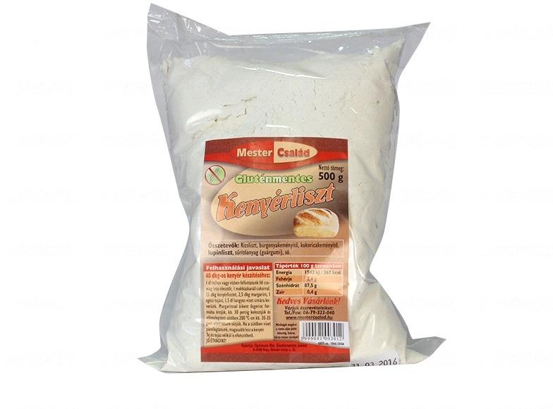 Kenyér készítéséhez való gluténmentes liszt, sütőben, tej és tojás nélkül is elkészíthető. Tápérték tartalom 100g termékben: Energiatartalom 1312 kJ ( 320kcal), fehérje: 0,5 g, szénhidrát: 79,3 g, édesítőszer: 0 g, zsír: 0,1 g, ebből telített zsír: 0 g, rost: 1 g, rost: 7g, só: 0,7 g. Termék összetétele: Kukoricakeményítő, kölesliszt, térfogatnövelő anyag (