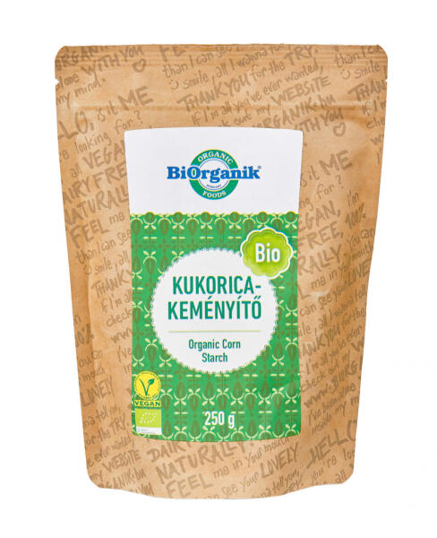 Biorganik bio kukoricakeményítő 250 g Összetevők: kukoricakeményítő A kukorica az egyik legősibb gabonánk. Közép-Amerikából származik, ahol az őslakosok rengeteg módon hasznosították. Jelentőség, hatások: A kukoricakeményítő csak szénhidrátot (keményítőt) tartalmaz. Vitamin- és ásványi anyag összetétele nem jelentős. Felhasználás: Használható ételek, italok