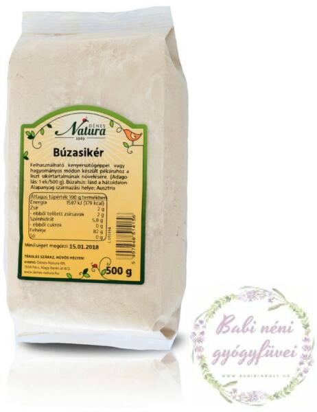 Összetevők: Kukoricakeményítő, rizsliszt, kukoricaliszt, burgonyakeményítő, sűrítő anyagok (xantán gumi, guar-gumi), emulgálószer (zsírsavak mono- és digliceridjei), cukorréparost. Tápérték 100g termékben: Energiatarta lom:1551 kJ/369 kcalZsír:0,2 gebből telített zsírsavak:0,01 gSzénhidrát:89,5 gebből cukor:0 gFehérje:1,3 gSó:0,06 g