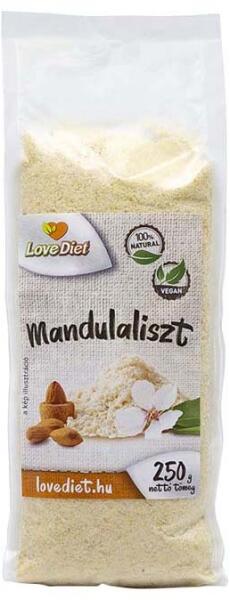 A Love Diet mandulaliszt nagy mennyiségben tartalmaz fehérjét, ásványi anyagokat, vitaminokat és rostot. Magas a fehérje tartalma, ezért a vegetáriánus és a vegán étrend nagyszerű alapanyaga is lehet. Levegősebb és lágyabb tészták készítésére is alkalmas.