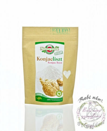 Összetevők:konjak (konjac) liszt A konjak növény gyökeréből állítják elő vízelvonással, őrléssel. Liszt, keményítő, zselatin helyettesítésére kiválóan alkalmas, például szószokba, levesekbe, lekvárokba, pudingba, gyümölcszselékbe stb. Diétázóknak kíváló alacsony zsír- és szénhidráttartalma miatt. Tápanyagtartalom (100 g-ban): Energiaérték: 750 KJ / 179 Kc