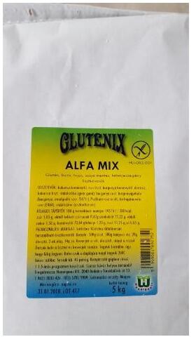 Összetevők: Kukorica keményítő, burgonya keményítő, rizsliszt, kukorica liszt, dextróz, burgonya pehely, burgonya rost, stabilizátor (guarmagliszt, xantan), állomány javító (E-464), alma rost, antioxidáns (aszkorbinsav). Átlagos tápérték 100 g termékben: Energia 1492 kJ / 355 kcal, Fehérje: 1,1 g, Szénhidrát: 87,35 g, Zsír: 0,16 g.
