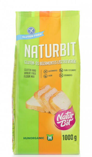 Finom fehér kenyér süthető belőle gépben vagy hagyományos sütőben, de felhasználható süteményekhez is. NATURBIT GLUTÉN- ÉS BÚZAMENTES LISZTKEVERÉK 1KG Finom fehér kenyér süthető belőle gépben vagy hagyományos sütőben, de felhasználható süteményekhez is. Összetevők: kukoricakeményítő, rizsliszt, kukorica liszt, burgonyakeményítő, dextróz, stabilizátor (E 450