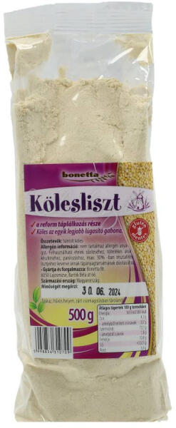 Száz százalékban hántölt kölesből készült, gluténmentes őrlemény. A köles az egyik legjobb lúgosító gabona, egyúttal a reform táplálkozás egyik fontos alapanyaga.