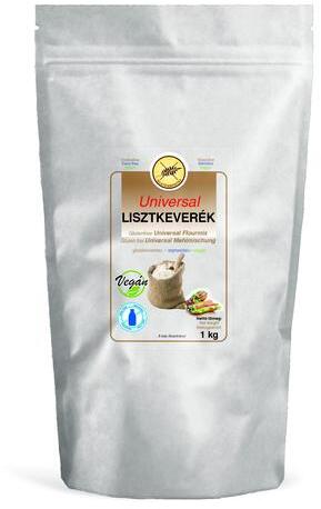 Összetétel: kukoricakeményítő, rizsliszt, tápióka keményítő, utifűmaghéjliszt, stabilizálószer: E 464, almarost Tápérték: E nergia: 1614 kJ/ 384 kcal zsír: 0,4 g ebből telített 0,1 g, szénhidrát: 76,6 g ebből cukrok 1,33 g, rost: 31,0 g, rost: 31,0 g, fehérje: 2,9 g, só: 0,74 g FELHASZNÁLÁS: 300 g gluténmentes zabos lisztet 6 g sóval, 15 g almaecettel és 380 g vízzel