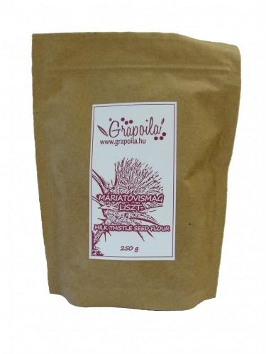 Grapoila máriatövismagliszt 250g A Grapoila máriatövismagliszt ásványi anyagokban és vitaminokban gazdag. Különösen magas fehérje-, élelmirost- és energiatartalommal rendelkezik. A máriatövist már évszázadok óta a májtisztítás leghatékonyabb gyógynövényeként tartják számon, 2013-ban az év gyógynövényének választották. Májvédő és -regeneráló hatása közism