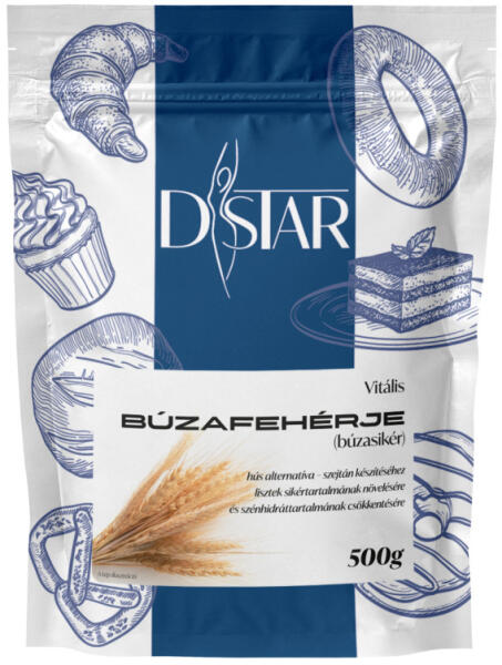 D-Star búzafehérje (búzasikér) 500 g Lisztek fehérje/sikér-tartalmának növelésére, hogy rugalmasabb, lazább, lyukacsosabb tésztát kapjunk. Lisztek szénhidráttartalmának csökkentésére. Vegán étrendbe hús alternatívaként beilleszthető. Összetevők: Vitális búzafehérje 100%