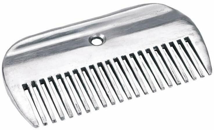Alumínium sörényfésű Bogozásra, tisztogatásra kitűnően alkalmazható fésű. Marokra kényelmesen fogható, mellyel nagyobb erő kifejthető. Anyagának köszönhetően hosszú élettartamú eszköz. - Anyaga: alumínium - Mérete: 10 cm