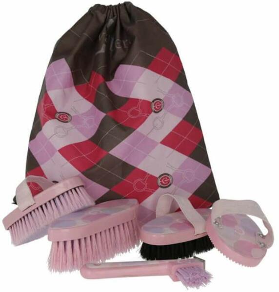 Lótisztító készlet gyerekeknek táskában Lilli Starlight Húzózsinórral és erősített sarkokkal ellátott sportzsák 4 db lótisztító eszközzel. Divatos, lányos színösszeállításban. Tornazsákként, hátizsákként is használható. A zsák anyaga: 100% poliészter A zsák mérete: 35 x 40 cm A zsák tartalma - 1 db vakaró - 1 db patakaparó - 1 db sörénykefe - 1 db lókefe