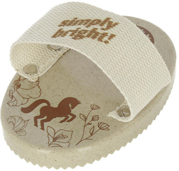 Fenntartható módon előállított műanyagból készült MagicBrush ovális lóápoló kefék vízilliom mintával díszítve. A sörték 65% természetes lószőrből, 35% újrahasznosított szintetikus rostokból. Kéz szíjjal, amely 100% pamutból készült.