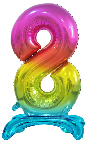 Fólia lufi, szivárvány színben. 74 cm magas, kizárólag levegővel tölthető, a talpa miatt biztonságosan megáll az asztalon vagy a földön is.