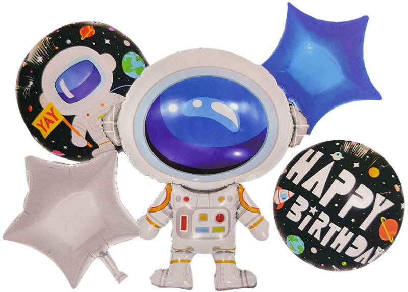 5 darabos Happy Birthday feliratú, űrhajós fólia lufi szett , mely egy születésnapi party igazán látványos dekorációs kelléke lehet. Lepd meg az űrutazást kedvelő gyerekeket egy ilyen lufi szettel, és garantáljuk, hogy sokáig emlékezni fog a dekorációra. Tulajdonságok: Anyaga: fólia A lufik mérete: kb. 45 cm × 45 cm és 45 cm × 100 cm A lufik levegővel és héliummal is