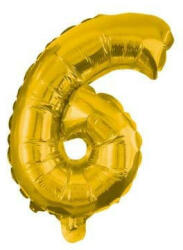 Mini 6-os Gold szám Fólia lufi 35 cm A léggömb csak levegővel történő feltöltésre alkalmas, hegesztést igényel. A lufi tartó pálca + csésze külön megvásárolható áruházunkban (DPA9911929). Anyaga: fólia