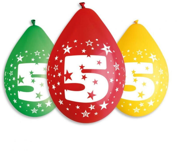 Happy Birthday 5 függő léggömb, lufi 5 db-os 12 inch (30 cm) Anyaga: latex/gumi Mérete: 30 cm (12 inch)
