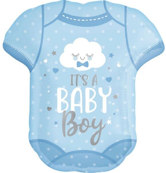 Baby Boy fólia lufi 60*55 cm Méret: 60*55 cm Fólia léggömb, mely héliummal vagy levegővel tölthető. A lufi önzárószeleppel van ellátva, amely megakadályozza a gáz elszökését. A lufi tartó pálca + csésze külön megvásárolható áruházunkban (DPA9911929). Anyaga: fólia
