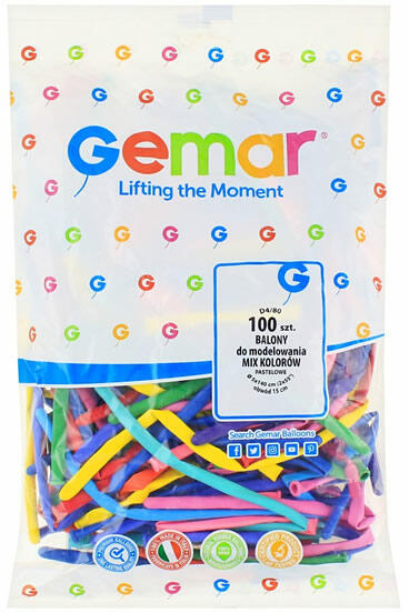 Cső alakú lufi, formázható, több színben, 100 darab/csomag. Felfújt állapotban szélessége 5 cm, hossza: 110 cm.
