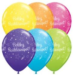 Happy Birthday 6 függő léggömb, lufi 5 db-os 12 inch (30 cm) Anyaga: latex/gumi Mérete: 30 cm (12 inch)