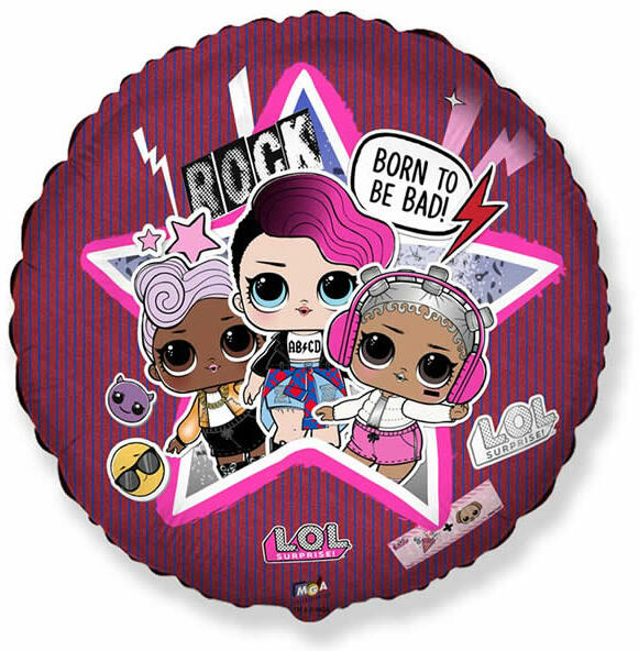 Fólia lufi, 18"/45cm, gömb, LOL bébik. Önzáró szelepes, tölthető levegővel vagy héliummal.