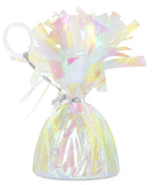 Héliummal felfújt lufik rögzítésére használható lufi súly fényes hologrammos színben. Így könnyedén elhelyezhető a szoba bármely részében örömet okozva az ünnepeltnek. Kúp alakú, fényes fóliával bevont lufisúly mérete 12 cm, súlya 140 g. Ajánljuk pl. esküvői dekorációhoz is.
