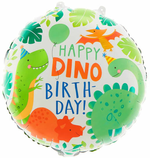 Dinoszauruszok, gömb alakú fólia lufi, átmérője 46 cm. HÉLIUMMAL FÚJHATÓ, ÖNZÁRÓ SZELEPES.