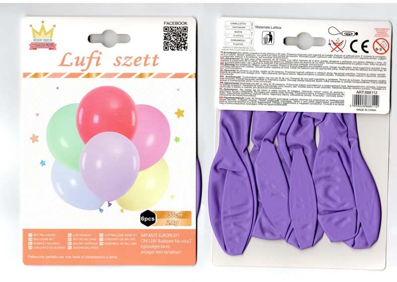 Lufi csomag levendula, 6db 30 cm Termékjellemzők: Anyaga: műanyag Alkalom: Bármilyen Figyelmeztetés: Figyelmeztetés: 8 év alatti gyerekek esetén fulladásveszélyes a felfújatlan lufi. ; 3 éves kor alatt nem ajánlott!; Figyelmeztetés: fulladásveszély, kis alkatrészek! Kinek ajánlott: Bárkinek