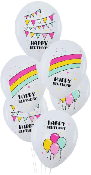 Tedd varázslatossá a születésnapi ünnepséget ezzel a vidám és színes 6 darabos latex lufi szettel. A szivárványos minta és a "Happy Birthday" felirat egyedi és ünnepi hangulatot kölcsönöz minden eseménynek, így tökéletes választás bármilyen korosztály számára, legyen szó gyerekekről vagy felnőttekről. Tulajdonságok: - Anyaga: latex - A lufik színe: fehér alapon sz