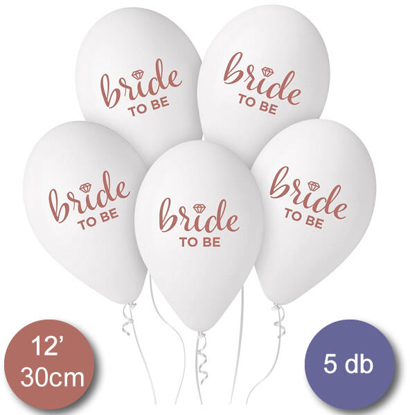 Bride to be feliratú lufi (5 db/csomag) Mérete: 30 cm Anyaga: latex. A latex léggömbök 100%-osan környezetbarátak, ugyanannyi idő alatt bomlanak le, mint egy tölgyfalevél. A léggömbök a printelésük miatt héliumos felfújást igényelnek vagy levegővel történő felfújás esetén tartó pálcára rögzíthetőek. A léggömb felfújásához kérjük, hogy használjon lufi fújó