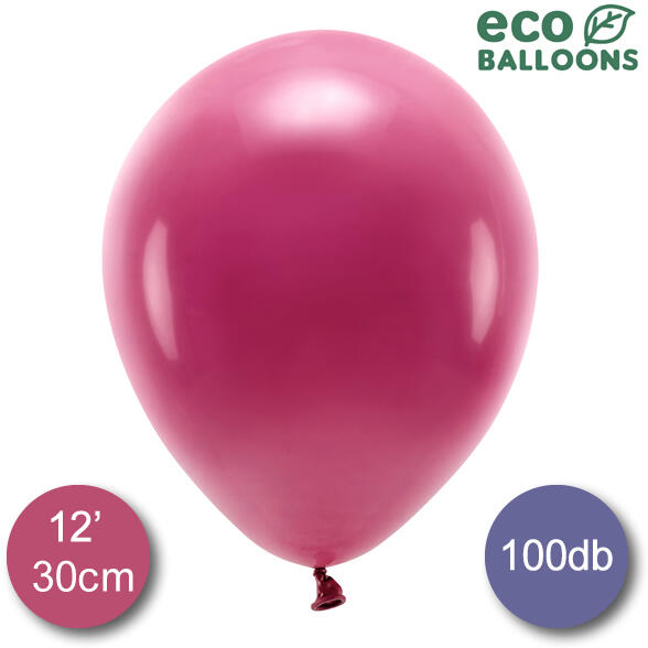 Burgundi latex lufi, átmérő 30 centiméter, héliummal vagy levegővel tölthető. Egy csomagban 100 darab lufi. Héliummal töltve 10-15 órát lebegnek szoba hőmérsékleten, a lebegési idő növelhető (3-5 nap) zselé hozzáadásával.