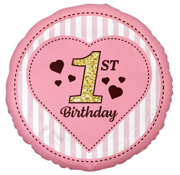 1st Birthday Pink, Első születésnap fólia lufi 36 cm Fólia léggömb, mely héliummal vagy levegővel tölthető. A lufi önzárószeleppel van ellátva, amely megakadályozza a gáz elszökését. Mérete 36 cm Anyaga: fólia A lufi tartó pálca + csésze külön megvásárolható áruházunkban ( KFJ_DPA9911929vagyKFJ_DPA9917359 ).
