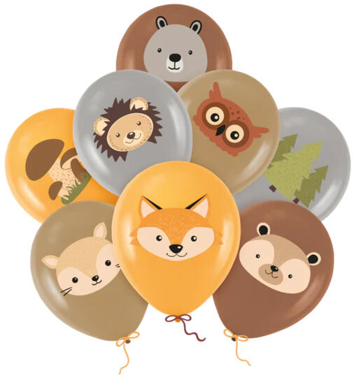 Latex lufi, Erdő állataimintákkal. 8 db/csomag. Piros színekben csomagolva. Egy oldalon printelt. felfújt állapotban 30 cm átmérőjű. Anyaga: latex. A léggömbök 100%-osan környezetbarátak, ugyanannyi idő alatt bomlanak le, mint egy tölgyfalevél. A léggömbök a printelésük miatt héliumos felfújást igényelnek vagy levegővel történő felfújás esetén tartó pálcára rö