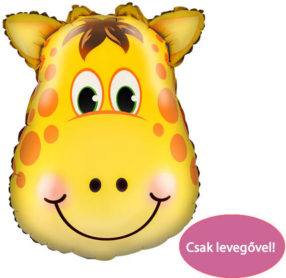 Fólia lufi, mosolygó zsiráf fej, 43x25 cm Csak levegővel, önzáró szelepes.