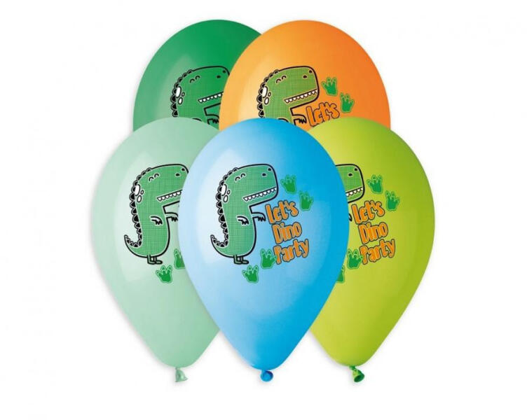 Let's Dino Party, Dinoszaurusz léggömb, lufi 5 db-os Anyaga: latex/gumi Mérete: 13 inch (33 cm) A lufi tartó pálca + csésze külön megvásárolható áruházunkban ( KFJ_DPA9911929vagyKFJ_DPA9917359 ).
