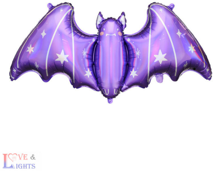 Lila színű denevér alakú óriás fólia lufi remek dekoráció minden halloweeni partyra! Lila denevér alakú fólia lufi Felfújható : levegővel vagy héliummal Mérete: 119*51 cm A csomag tartalma: 1 db lufi + 1 db szívószál a felfújáshoz
