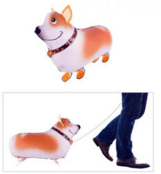 Aranyos léggömb kutyus, akit még meg is tudsz sétáltatni! A Sétáló kutya fólia lufi egy barna és fehér színű léggömb, papírból készült lábakkal. A fólia lufi különlegessége, hogy csak a nyakába kell kötnöd egy madzagot, és amikor húzod magad után, a léggömb egy sétáló kutyát fog imitálni. A lufit héliummal kell tölteni, és pont úgy van súlyozva, hogy a tal