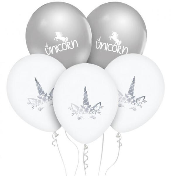 Unikornis Silver léggömb, lufi 5 db-os 12 inch (30cm) Unicorn, Unikornis léggömb, lufi 5 db-os 12 inch (30cm) Anyaga: latex/gumi Mérete: 30 cm (12 inch) A lufi tartó pálca + csésze külön megvásárolható áruházunkban (DPA9911929).
