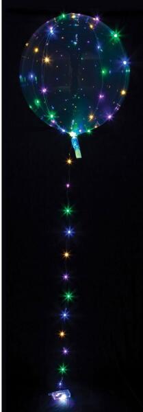 Világító átlátszó lufi színes fénnyel Teremtsen rendkívüli hangulatot születésnapi partin , bulin , esküvőn vagy kültéri ülve a teraszon vagy a kertben LED világító lufikkal . A lufi átlátszó, és színes fénydiódákkal ellátott LED-lánc veszi körül. 2 db AA 1,5 V-os zseblámpa nem része a csomagnak. mennyiség: 1 db átmérője: 45 cm 5 m lánc színes világítássa