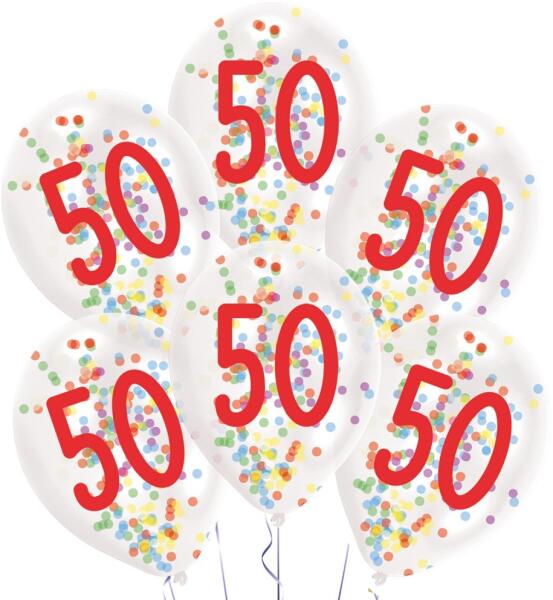 Happy Birthday 50 konfettivel töltött léggömb, lufi 6 db-os Anyaga: latex/gumi Méret: 11 inch/27,5 cm A lufi tartó pálca + csésze külön megvásárolható áruházunkban.