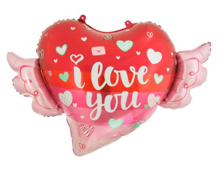 I love You Wings fólia lufi 68 cm Fólia léggömb, mely héliummal vagy levegővel tölthető. A lufi önzárószeleppel van ellátva, amely megakadályozza a gáz elszökését. Méret: 68x47 cm Anyaga: fólia A lufi tartó pálca + csésze külön megvásárolható áruházunkban.