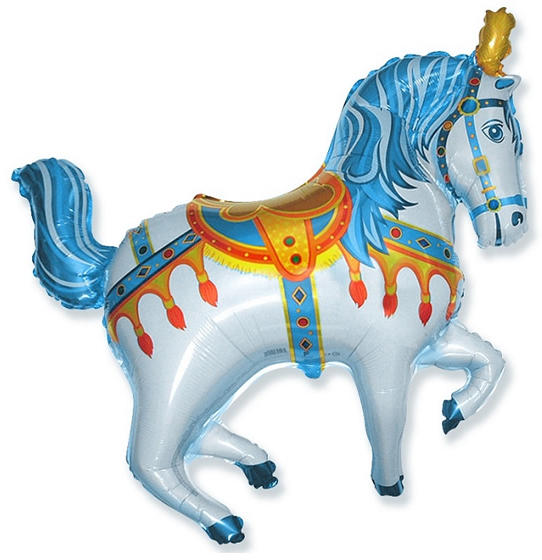 Fólia lufi, cirkuszos ló, kék. 24". Héliummal fújható, önzáró szelepes.
