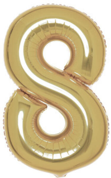 Arany 8-as szám fólia lufi Fólia léggömb, mely héliummal vagy levegővel tölthető. A lufi önzárószeleppel van ellátva, amely megakadályozza a gáz elszökését. Méret: 86x54 cm Anyaga: fólia A lufi tartó pálca + csésze külön megvásárolható áruházunkban.