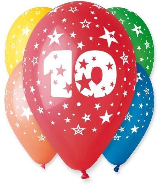 Gumiból készült, 10-es számot ábrázoló mintával ellátott lufik, vegyes színekben. A készlet 5 db lufit tartalmaz, ezekkel feldobhatod a saját vagy barátaid buliját! Mérete: 33 cm.
