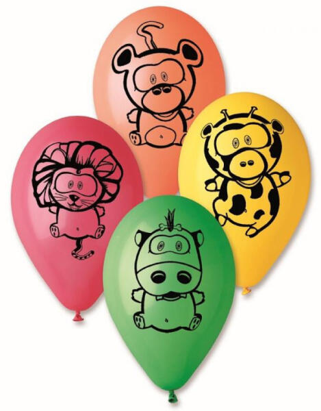 Jungle Animals, Állatos léggömb, lufi 5 db-os 12 inch (30cm) Anyaga: latex/gumi Mérete: 30 cm (12 inch) A lufi tartó pálca + csésze külön megvásárolható áruházunkban (DPA9911929).