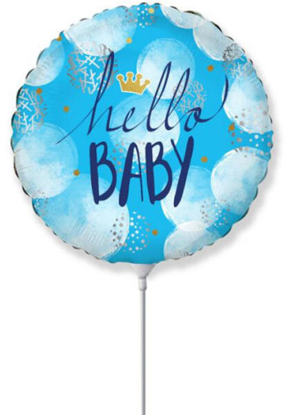Hello Baby Blue fólia lufi 36 cm Gyártói csomagolás nélkül! Fólia léggömb, mely héliummal vagy levegővel tölthető. A lufi önzárószeleppel van ellátva, amely megakadályozza a gáz elszökését. Anyaga: fólia A lufi tartó pálca + csésze külön megvásárolható áruházunkban (DPA9911929).