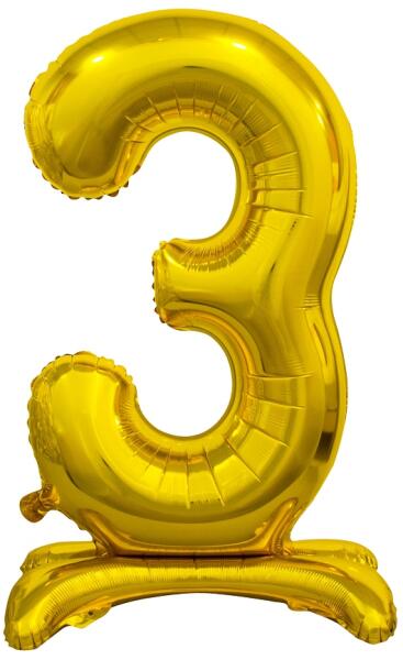 Talpas álló fólia lufi 3-as arany 74 cm mennyiség: 1 db méret: 74 cm alkalmas levegővel történő felfújásra Színesítse a születésnapi ünnepséget szám formájú talpas álló fólia lufival . Kiváló minőségű, nem légáteresztő anyagból készült. Az álló fólia lufi előnye, hogy egyedül is megáll, bárhová helyezi. Levegővel felfújva pár hónapig is megtartja vál