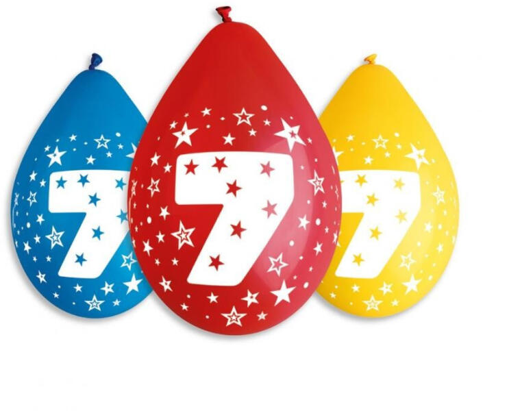 Happy Birthday 7 függő léggömb, lufi 5 db-os 12 inch (30 cm) Anyaga: latex/gumi Mérete: 30 cm (12 inch)