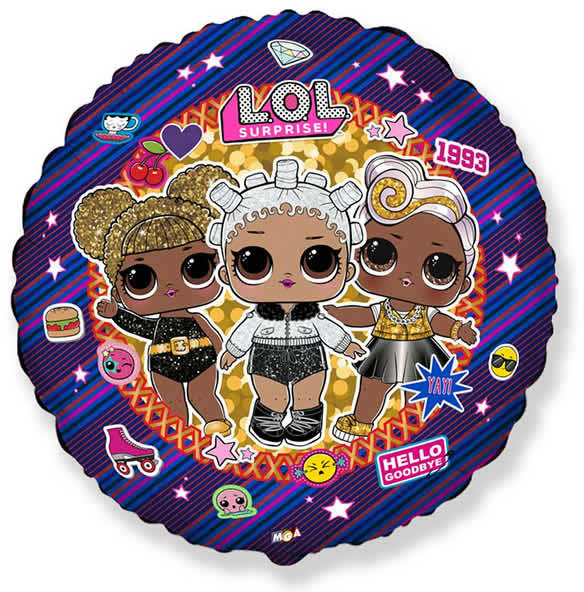 Fólia lufi, 18"/45cm, gömb, LOL. Önzáró szelepes, tölthető levegővel vagy héliummal.