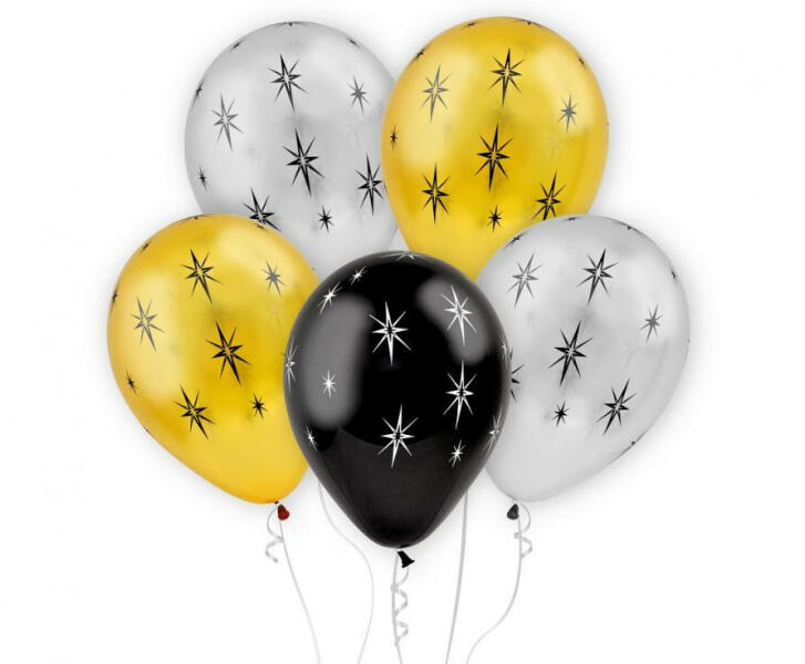 Gold Star, Csillagos léggömb, lufi szett 6 db-os 33 cm (13 inch) Mennyiség: 6 db Mérete: 33cm (13 inch) Anyaga: latex/gumi A lufi tartó pálca + csésze külön megvásárolható áruházunkban (DPA9911929).