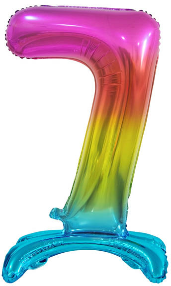 Fólia lufi, szivárvány színben. 74 cm magas, kizárólag levegővel tölthető, a talpa miatt biztonságosan megáll az asztalon vagy a földön is.