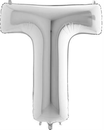 Ezüst lufi T betű. A lufi tömör fóliából készült.