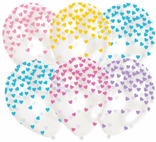 Heart, Szív konfettis léggömb, lufi 6 db-os 11 inch 27,5 cm Anyaga: latex/gumi Mérete: 27,5 cm A lufi tartó pálca + csésze külön megvásárolható áruházunkban DPA9911929.